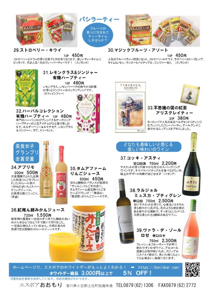 3月14日はホワイトデー。今年のエスポアはおうち時間を楽しくするプレゼントを考えてみました。いろいろな組合せでラッピングを承りますので、あの人が喜ぶオンリーワンなプレゼントをお贈り下さい!ホワイトデーにdonisbarでのお食事、なんてプレゼントもいかがですか?何でもご相談くださいね!