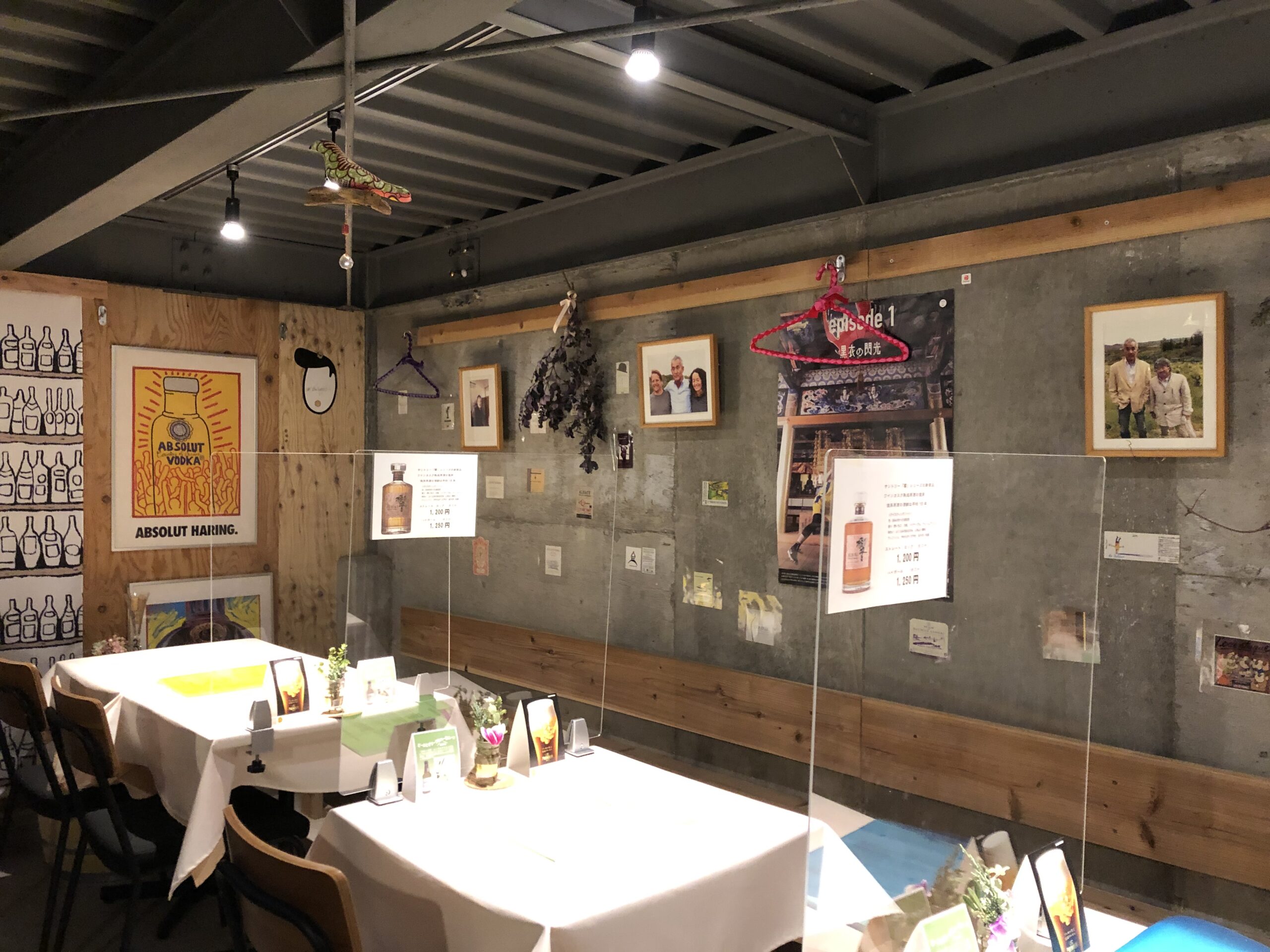 店舗正面の入り口を手動ドアに替え、換気に努めています。空気清浄機も酒屋店内とドニズバーにそれぞれ2台設置しております。また、バーの換気のために換気扇も大型のものに交換しました。補助扉も開けれるようにタペストリーもつけています。飛沫防止アクリル板も設置しました。また、こまめな殺菌、消毒にも努めております。どうぞ安心してご来店下さい。