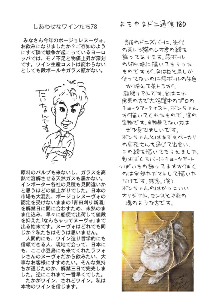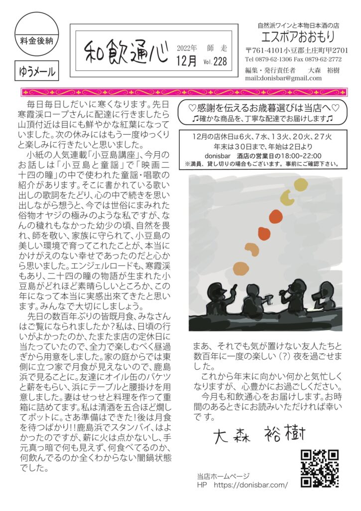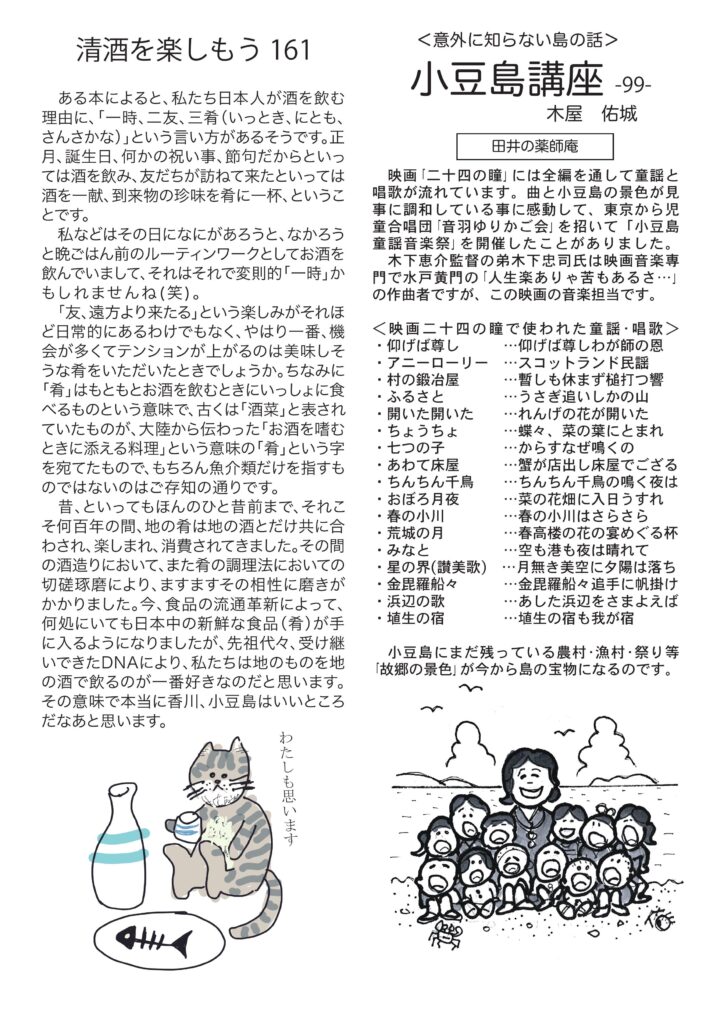 W杯サッカーが真っ盛りですね。すべての国際紛争をサッカーでも野球でも、なんかスポーツ競技で決着つけたらいいのにと、夢のようなことを考えています。冒頭のお話しは「皆既月食」、清酒は「酒を飲む理由付け」、小豆島講座は「小豆島と童謡」(今気付きました、題名が訂正されていません(汗)。ワインはヌーヴォのお話し、ニャンコ話は「梵ちゃんの作品」、Macが壊れて困った話、おもしろ草紙は「クリスマスイブ」 お楽しみください。