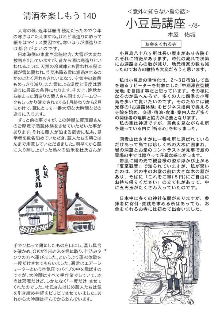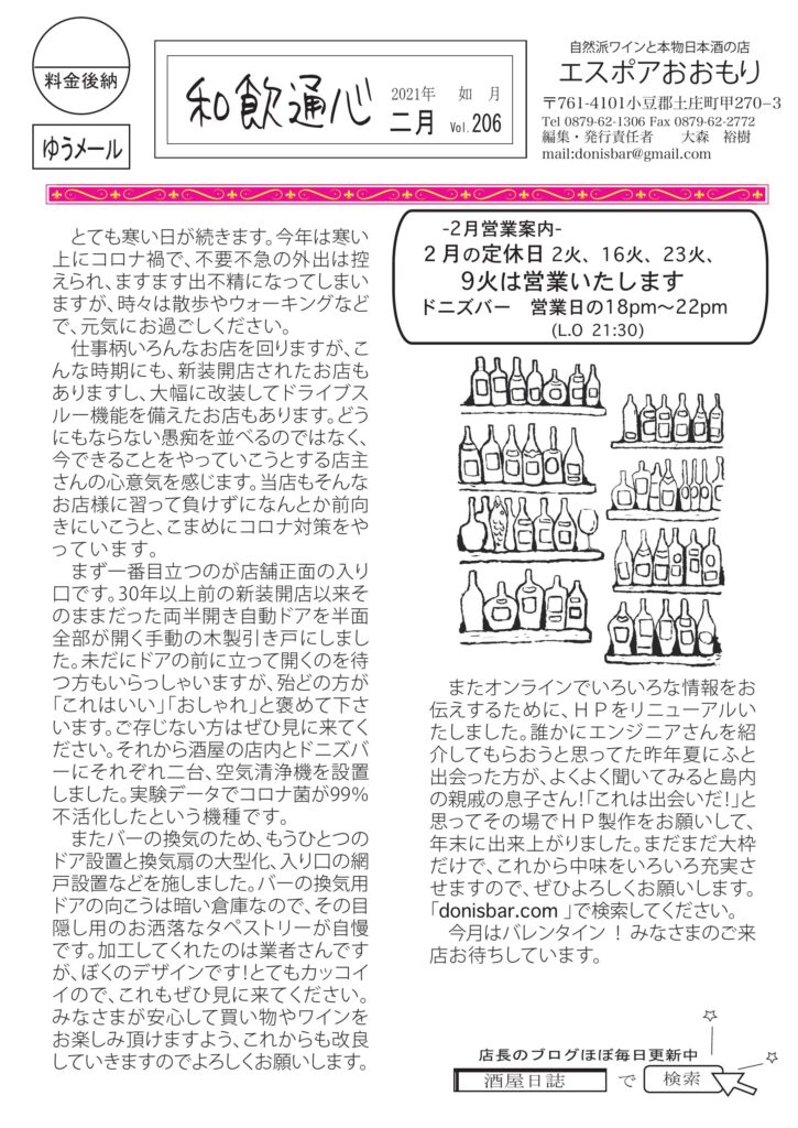 毎月お客様に配っている当店のニュースレター「和飲通心2月号」できました。お時間のある時にでもご覧いただければ幸いです。