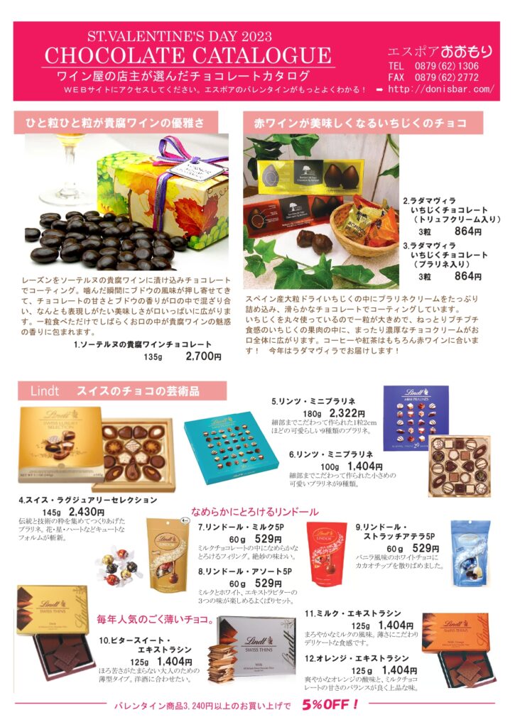 2023年バレンタインのご案内です。このほかにもオリジナル商品他いろいろございますので、ぜひ店頭でチェックしてくださいね!