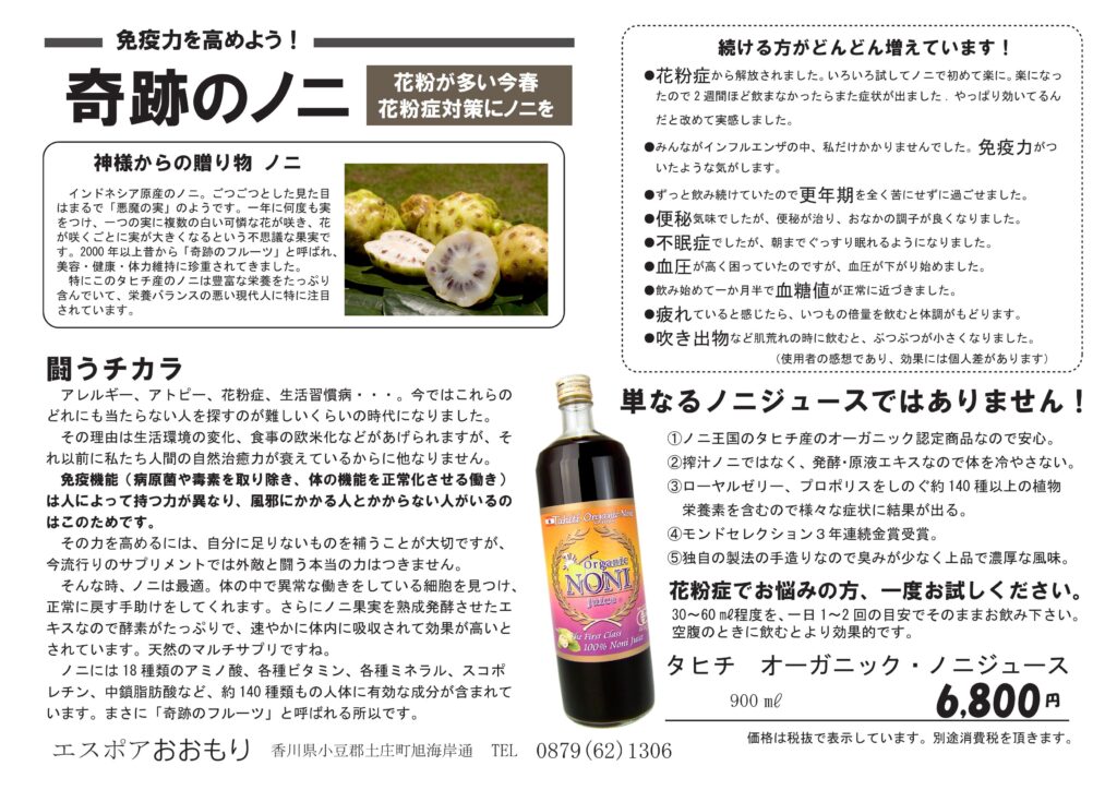土庄町小海の残石公園で週末に買える殻付き牡蠣がめちゃくちゃおいしいので、キリッと冷やした白ワインと会わせておうちでオイスターバー企画です。 秋田の春霞さん、山形の上喜元さん、長野の大雪渓さん雑誌やメディアにばんばん取り上げられてすごい事になってます。 ぜったいに美味しくて、お得なワインとチーズの頒布会のお知らせです。楽しい!美味しい! 花粉の季節がやってきた!ノニで体質改善!