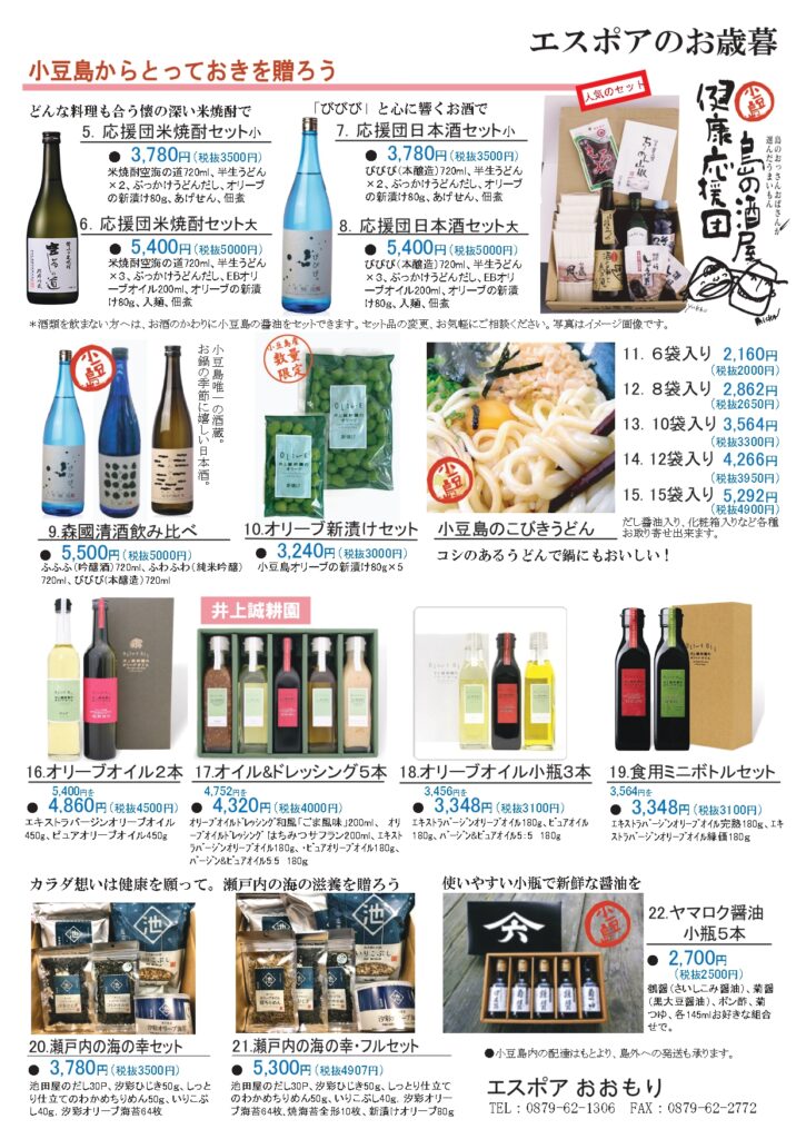 小豆島での配達はもとより、全国への配送も承りますので、お気軽にお問い合わせください。別に冬の贈答カタログも用意しております。