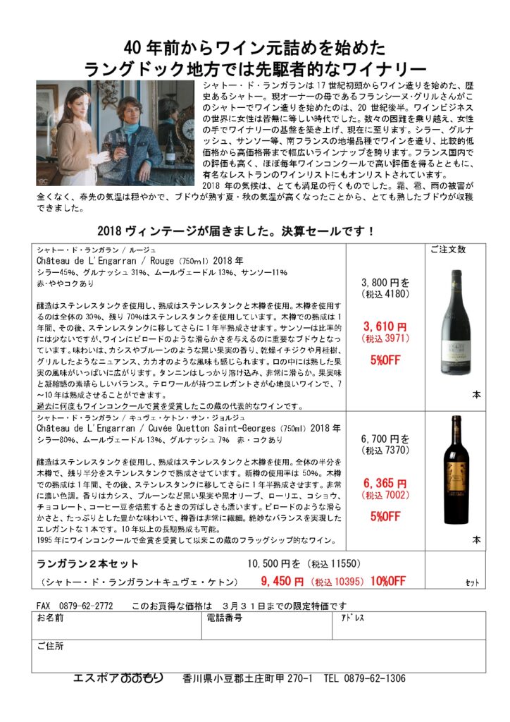 卒業や入学であわただしい毎日を送っていらっしゃる方も多いだろう3月。始まりの春を目いっぱい感じられる日本酒と、フィネスのある洗練されたワインをご紹介します! 大事なお食事の時のおともにピッタリですよ! どれを選ばれても後悔しないラインナップです! 『ランガランが好き!』とおっしゃってくれるお客様が多いです。そのランガランの数あるワインのなかでもトップクラスの赤を2本ご紹介しています。大事な方と一緒に飲んでいただきたいです。