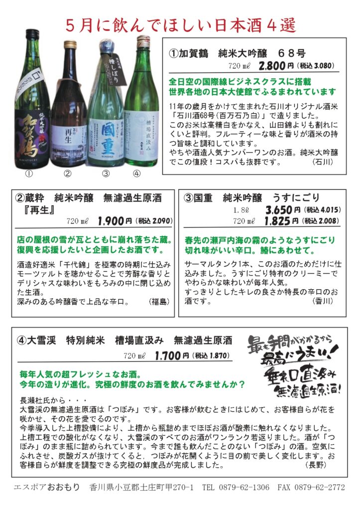 ゴールデンウィーク、こどもの日、母の日など行事が目白押しの5月。新任ゅう生たちの少し慣れてきたころではないでしょうか。そんな時にみんなで楽しめるワインや食品。エスポアのイチオシで楽しいひと時をお過ごしください。